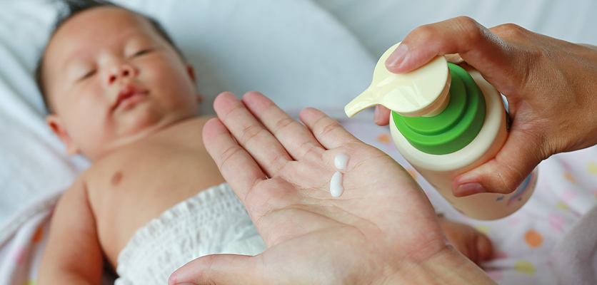 2. Gunakan pelembap yang sesuai dengan kerap dan ketika perlu, dan sapukan pelembap secukupnya pada kulit bayi dengan segera selepas mandi.