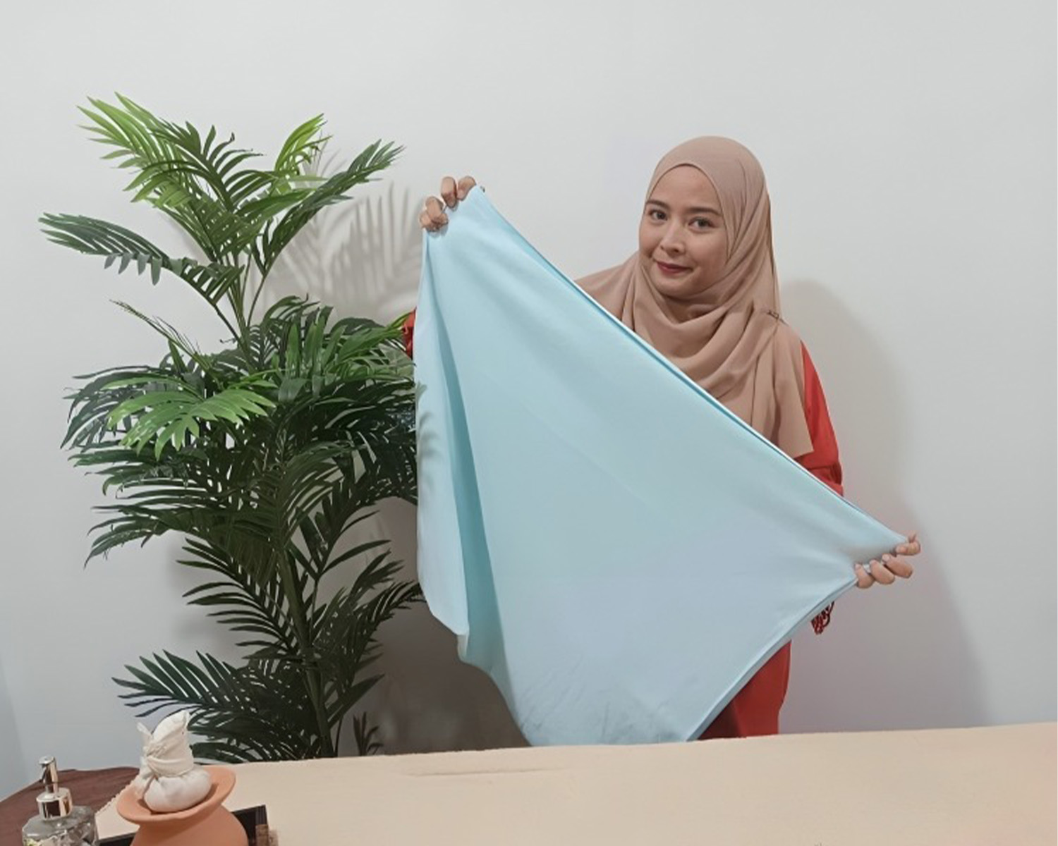 • Pastikan si ibu memilih jenis kain nipis dan mudah serap peluh, tidak terlalu kecil dan tidak pula terlalu besar.