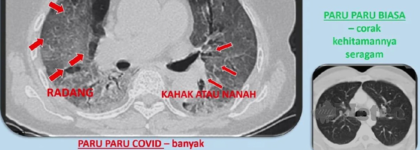 Menurut Dr S Malar, bedah siasat ujian imbasan CT menunjukkan paru-paru pesakit Covid-19 dalam keadaan sangat padat kerana mengandungi banyak virus dan sel darah putih (limfoist) yang melawan virus berada pada permukaan serta di dalam paru-paru.