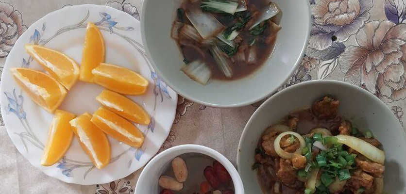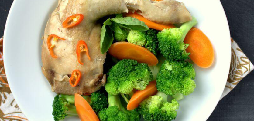 1 mangkuk cina nasi + 2 sajian sederhana protein (cth : 1 ketul peha ayam) + 1 cawan sayur- sayuran (sup sayur lobak putih + sawi + carrot) + 1 sajian buah-buahan (cth : 1 biji epal) |