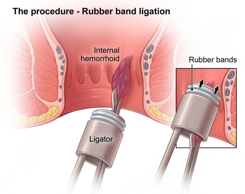 Rawatan pembedahan untuk buasir bergantung kepada peringkat buasir yang dihadapi oleh pesakit. Antara rawatan intervensi awal buasir adalah banding atau ikat. Salur darah yang bengkak akan diikat dengan getah. Kemudian, buasir akan mengecut.
