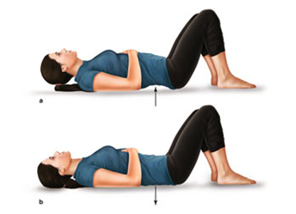 Senaman lengkukan pinggang sambil kontraksi otot lantai pelvis dalam posisi baring.