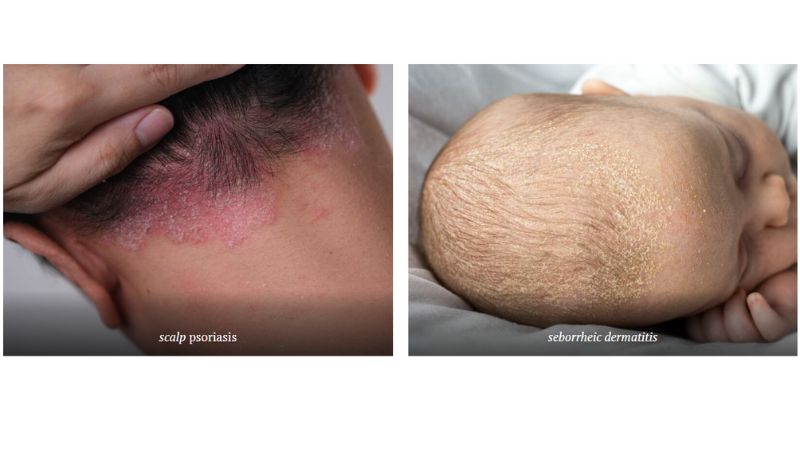 Seborrheic dermatitis lebih umum pada bayi dan dikenali sebagai cradle cap, manakala psoriasis berlaku pada kulit yang lebih luas dan biasanya pada orang dewasa. Dapatkan nasihat doktor jika anda tidak pasti.