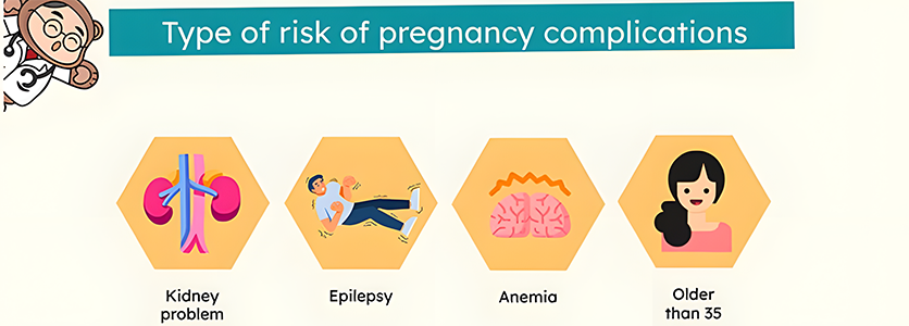 Kidney problems, epilepsy, anaemia and other factors that may increase the risk of pregnancy complications include being older than 35, being younger than 20, smoking cigarettes, drinking alcohol, and taking illicit drugs. Â