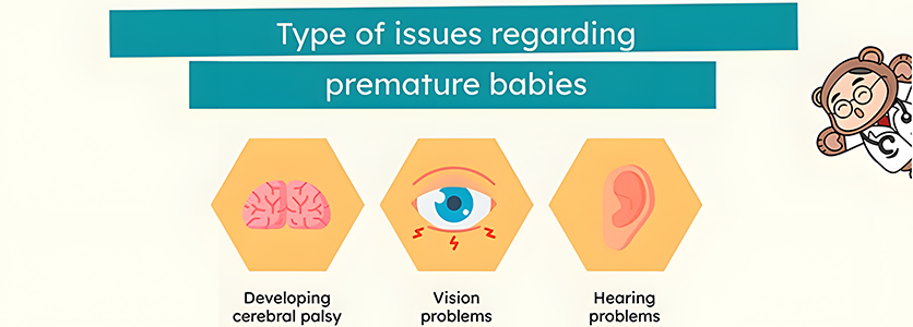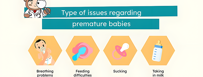 Feeding difficulties, sucking, taking in the milk and of course, higher risk of developing cerebral palsy, vision problems, hearing problems.Â