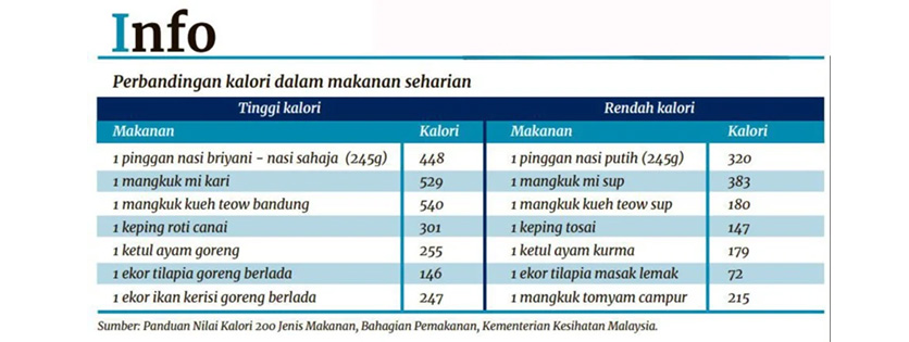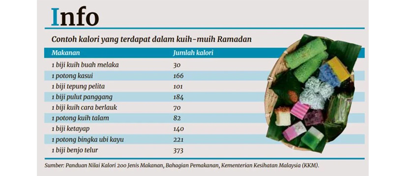 Sahur seperti makan tengah hari, iftar seperti makan malam dan snek waktu malam seperti sarapan. Hati-hati dengan kuih-muih serta air manis kerana ini boleh meninggikan jumlah kalori anda dengan ketara.