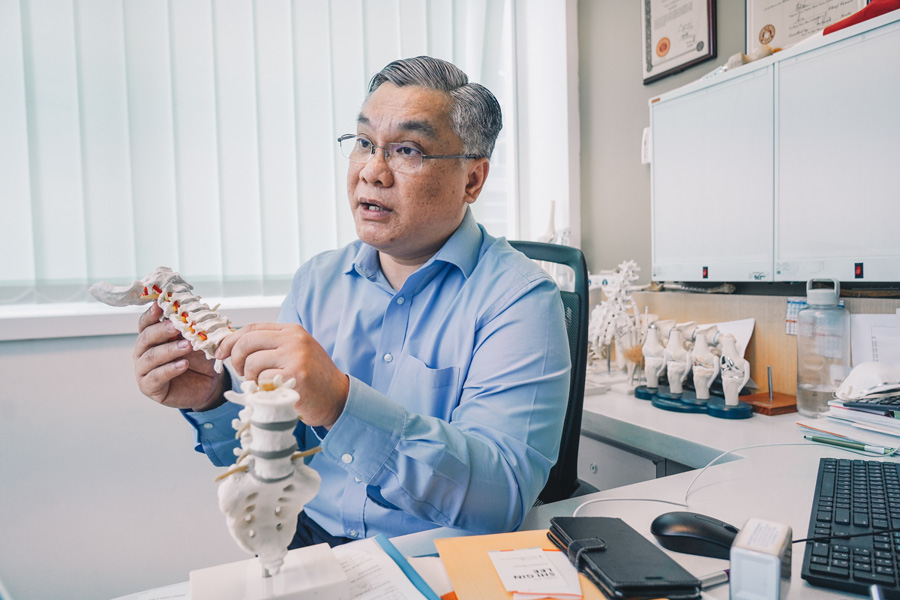 崔医生先后在马来亚大学获得医科学士和骨科硕士专业,随后曾到新加坡接受半年的脊椎骨科训练,并每年根据政府规定接受培训。拥有20年骨科专科经验的他说,腰酸背痛是现代普遍的病症,虽然80%的人曾经历腰酸背痛,但当中90%的患者只要休息就会痊愈,只有少部分人需要药物和手术治疗。据他观察,现代人腰酸背痛常见的3个原因包括: