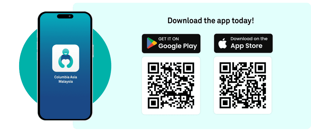 Go to Google Play or Apple App Store and search for “Columbia Asia Malaysia”